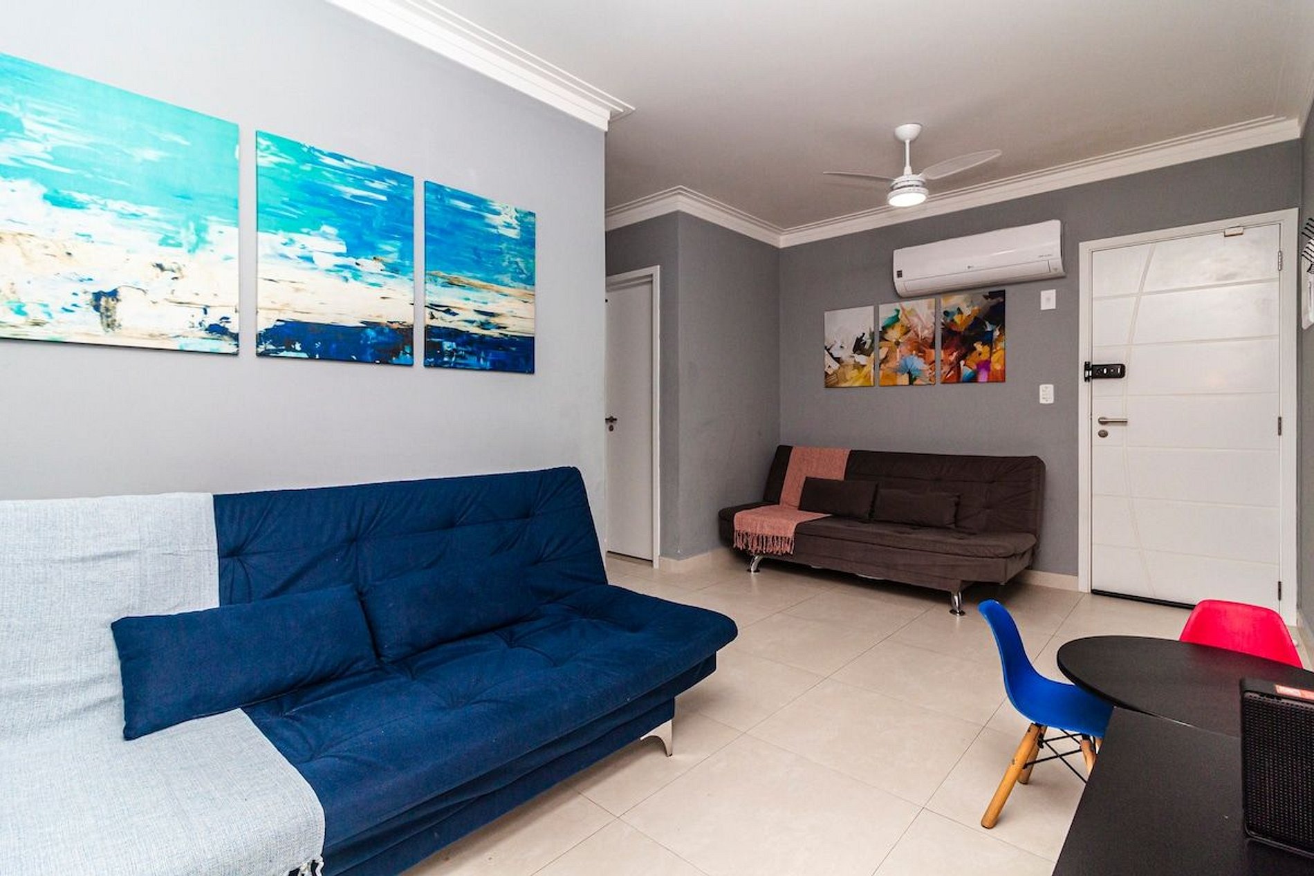 - Ar condicionado e ventiladores de teto em todos os ambientes