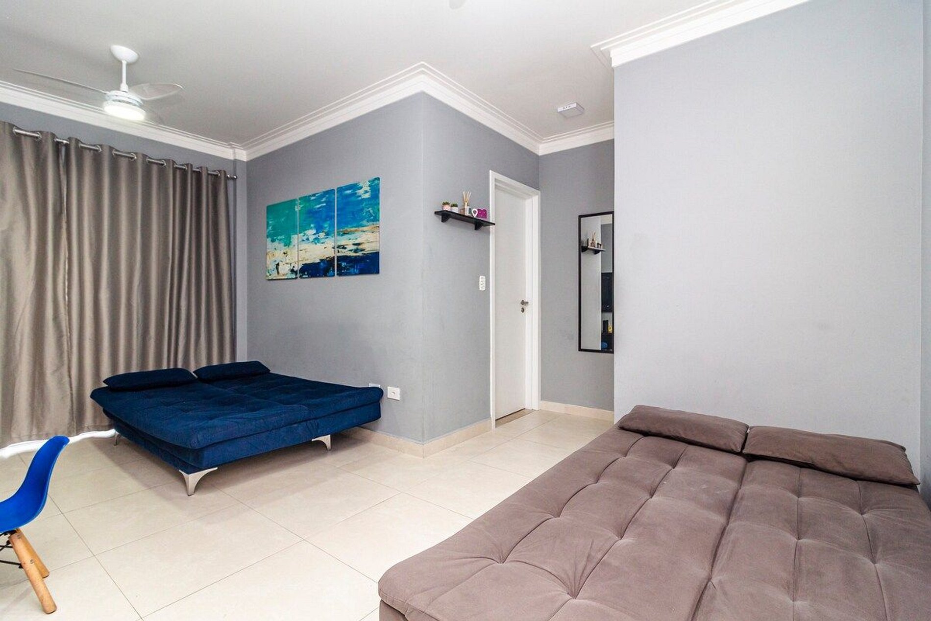 - Cortina blackout na sala e quarto